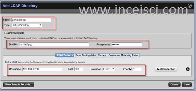 UYARI : Ldap test fail olur ise PGP Universal Server ile Active Directory sistemleri arasında 389 portu açık olmalıdır.