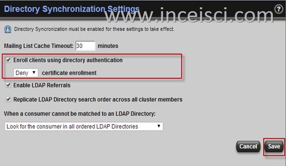 Directory Synchronization ayarları aşağıdaki gibi yapılandırıp save’I seçiniz.
