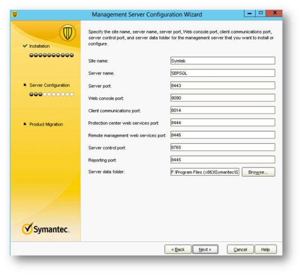 Kurulum tamamlandıktan sonra Management Server Configuration Wizard’ı kullanarak SEPM’I yapılandırmamız gerekmektedir. Next diyerek yapılandırmaya devam ediyoruz.