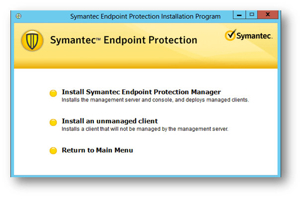 “Install Symantec Endpoint Protection” seçerek kurulumu başlatıyoruz.