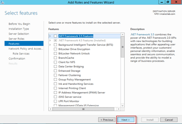 NPS Radius Proxy ve NPS olarak kullanilacak butun sunucular üzerinde aşağıdaki kurulumlar yapılmalıdır. Kurulumların hepsi aynı olduğu için diğer sunucu kurulumları için ekran görüntüleri koyulmamıştır.