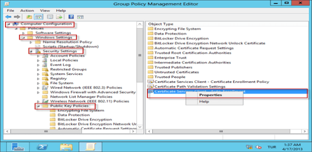 - Active Directory “Default Domain Policy” veya yeni bir politika üzerinde Client Auto Enrollment politikası yapılandırılmalıdır.