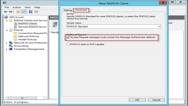 NPS Radius olarak yapilandirilacak sunucularda aşağıdaki konfigurasyonlar yapılmalıdır.