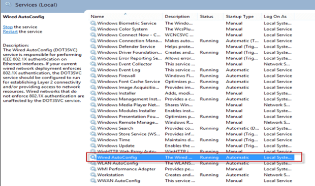 Servislerden Wired Auto Config Start edilir. Startup type’I Automatic’e getirilir.