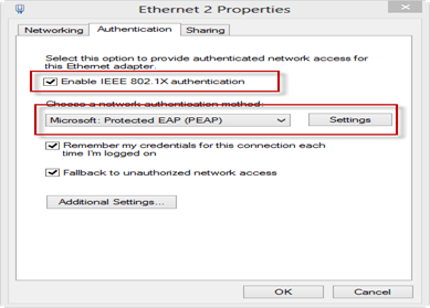 Ethernet Karti ayarlarından 802.1x Aktif edilir. Kimlik Doğrulama method seçilir.