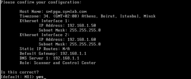 Son olarak yaptığımız konfigürasyonu kontrol ediyoruz. Eğer bir yanlış var ise düzeltiyoruz. “Yes” diyerek ilk kurulum adımlarını tamamlıyoruz. Bundan sonraki yapılandırmalar Web Arayüzünden yapılmaktadır. Bu işlem 5 dakika sürmektedir.