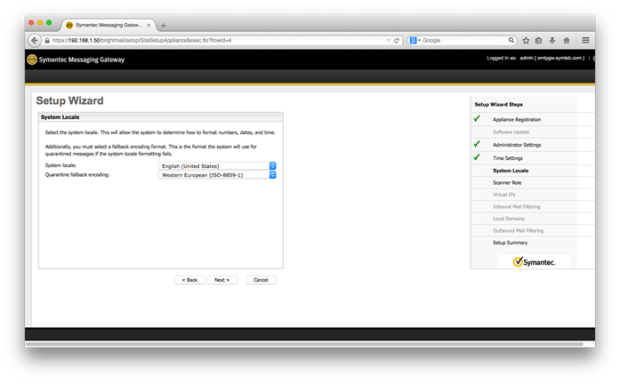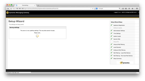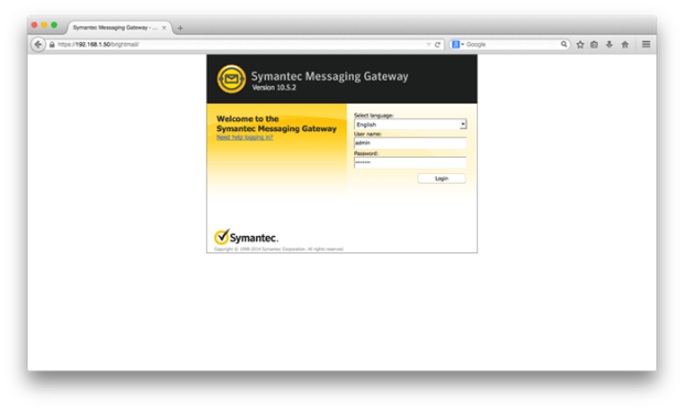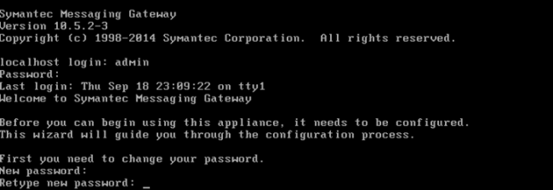Kurulum tamamlandıktan sonra sunucuya login oluyoruz. Kullanıcı adı “Admin” Password “symantec” ilk girişte şifreyi değiştirmemizi isteyecektir.