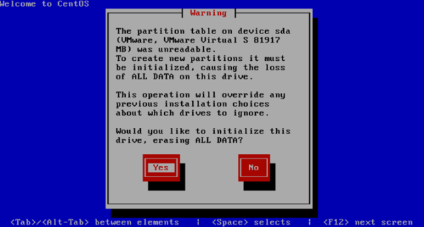 Kurulum DVD’si sunucu boot edildikten sonra mevcut disk üzerindeki datalar silinecek’tedir. “Yes” diyerek kuruluma başlıyoruz. Bu işlem 10-15 dakika sürmektedir. Kurulum bittikten sonra sunucu restart edilecektir.