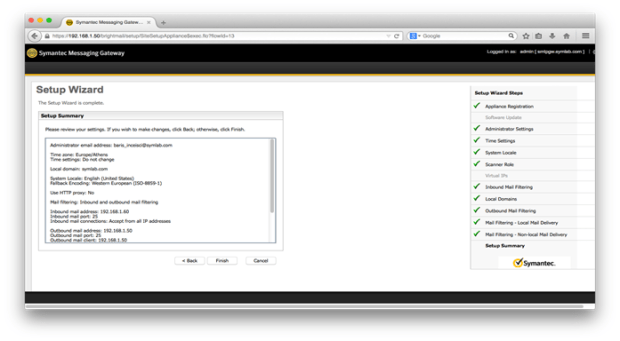 Yapılandırmamızı kontrol ediyoruz. Herhangi bir sorun yoksa “Finish” diyerek kurulumu tamamlıyoruz.
