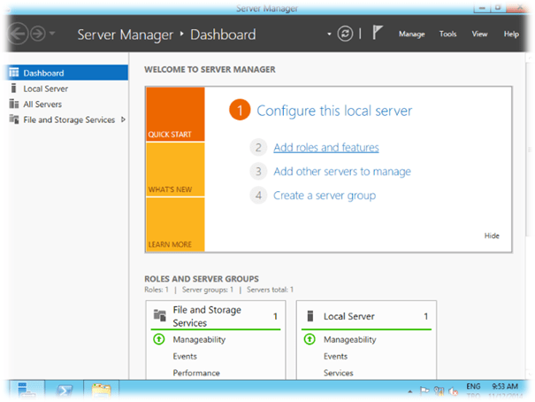 Server Manager Ekranında “Add Role ad Features” seçiyoruz.