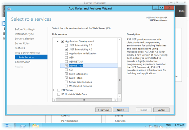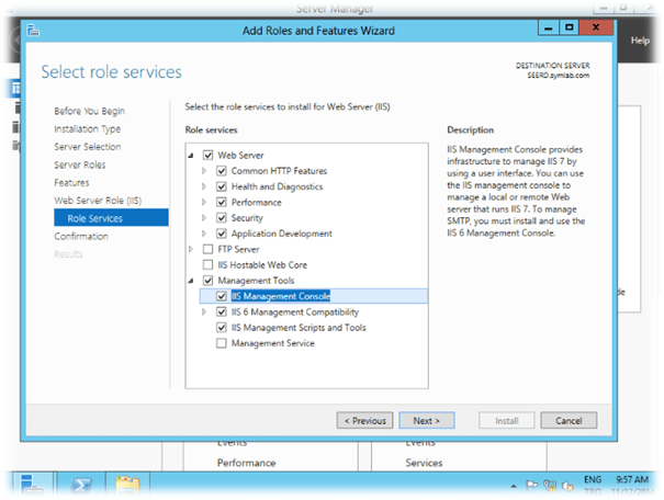 IIS’in Servislerini aşağıdaki şekilde yapılandırıyoruz. “Next” diyerek kuruluma devam ediyoruz.