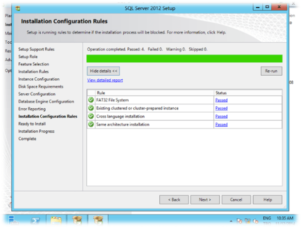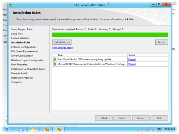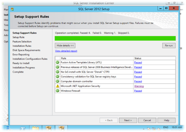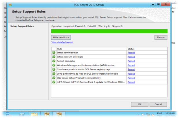 Kurulum için belirli kontroller yapılmaktadır. Bu kontrollerin “Passed” olması gerekmektedir. OK diyerek kuruluma devam ediyoruz.