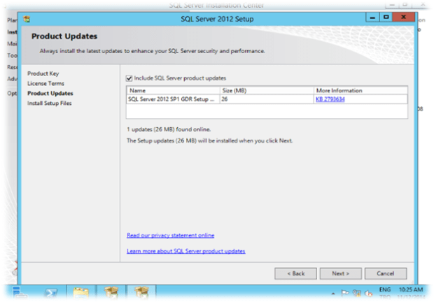 SQL Server Güncellemelerini kontrol ediyoruz. Güncelleme var ise “Include SQL Server Product Updates” seçiyoruz.. Next diyerek kuruluma devam ediyoruz