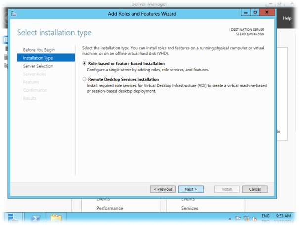 “Role-Base or Feature-base installation” seçerek “Next” diyoruz.