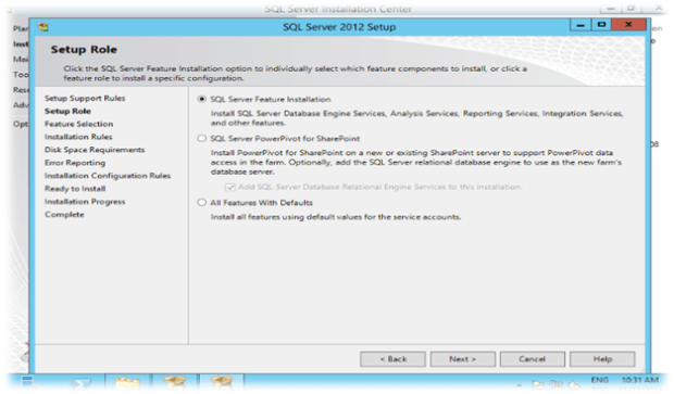 Setup Role’lerinde SQL Server üzerine kuracağımız Role’leri seçiyoruz. Biz SEPM özel kuracağımız için “SQL Server Fature installation” seçiyoruz. Next diyerek kuruluma devam ediyoruz