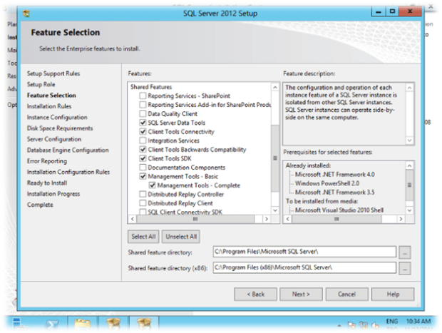 Burada Shared Feature Directory değiştirilirse SEE üzerinde de bcp.exe’nin yeri buradaki adres yazılmalıdır. Yazılmadığı takdirde SQL Server Client Connectivity yüklenmedi hatası vermektedir.