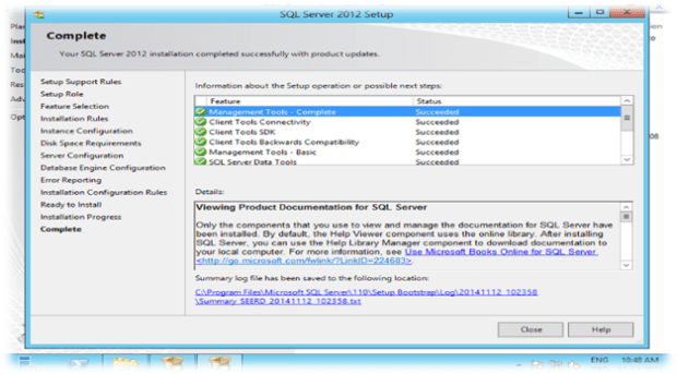 SQL Server kurulumu tamamlanmıştır.