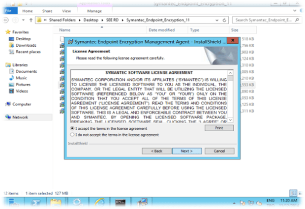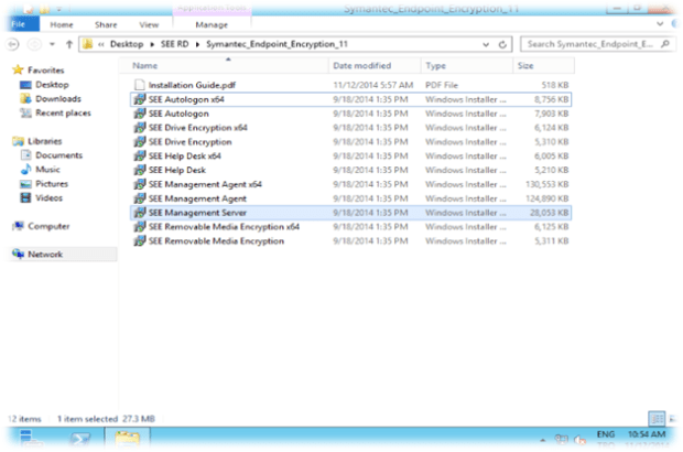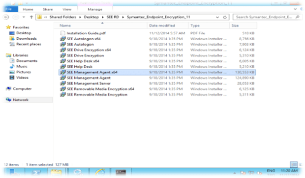 Symantec Endpoint Encryption Server kurulumundan sonra Management Console kurulumu için işletim sistemine göre SEE Management Agent kurulum dosyasını çalıştırıyoruz.
