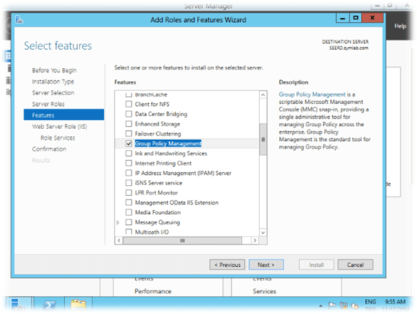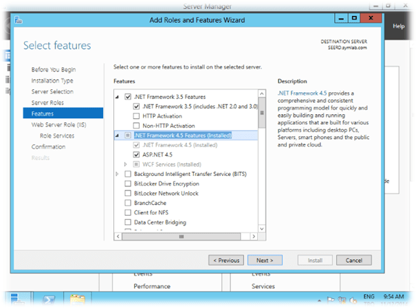 Symantec Endpoint Encryption yüklemeye başlamadan önce Management uygulamasının yükleneceği sunucuda öncelikle .NET 3.5, .NET 4.5 , IIS ve Remote Server Administration araçlarını yükleyeceğiz.