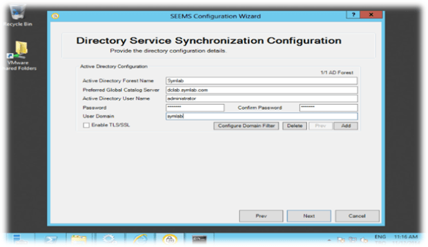 Management Server kurulumu tamamlandıktan sonra SEEMS Configuration Wizard başlayacaktır. Active Directory ile Senkronizasyonu aşağıdaki gibi ayarlıyoruz. ayarlıyoruz.