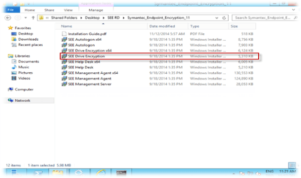 Symantec Endpoint Encryption Server ve Management Console kurulumları tamamlandıktan sonra Drive Encryption eklentisini kuruyoruz. Drive Encryption kurulumu için işletim sistemine göre SEE Drive Encryption kurulum dosyasını çalıştırıyoruz.
