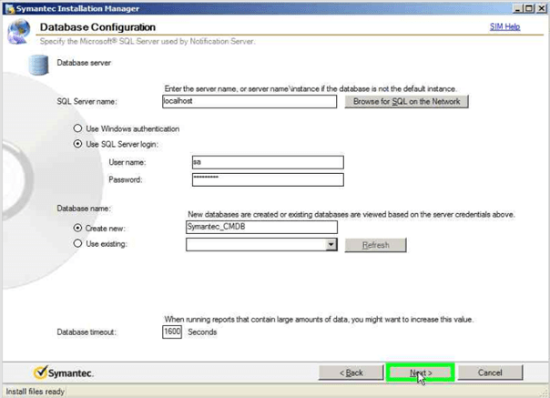 SEPIC sunucusunun kullanacağı SQL Server Adı, Login Bilgileri ve Database isimlerini yazıyoruz.”Next” diyerek devam ediyoruz.
