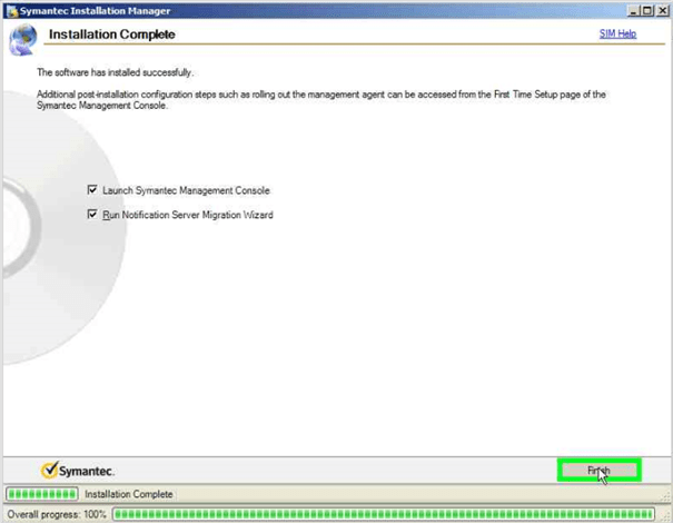 “Launch Symantec Management” seçiyoruz. Finish diyerek kurulumu tamamlıyoruz.