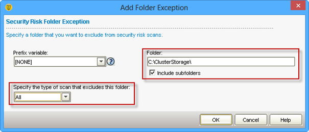 “Specify the type of scan that excludes this folders” kısmında istisna işleminin hangi taramalarda uygulanacağını seçebiliyoruz.