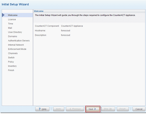 - CounterACT Lisansı var ise Install License diyerek yüklüyoruz. Lisans yok ise Lisans Online olarak alınabilmektedir. Yapılandırma sonrası yapılacaktır. “Next” diyerek devam edilir.