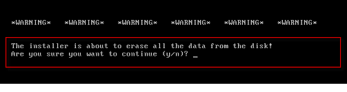 - Kurulum yapılacak olan disk’ler üzerinde data varsa bunlar silinecektir. “Y” diyerek kurulumu başlatıyoruz.