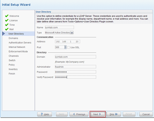 - Authentication Servers ekranındaki bilgiler otomatik olarak gelmektedir. “Next” diyerek devam edilir.