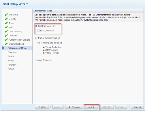 - Enforcement Mode bölümünde “Full Enforcement” istenirse NAT detection’u aktif edilir. “Next” diyerek devam edilir.