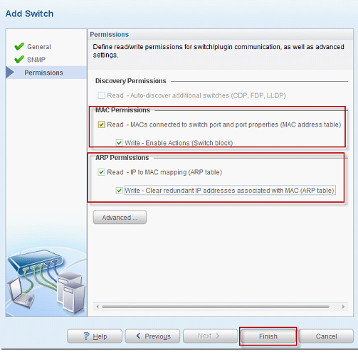 Switchlerüzerinden bilgi almak için ve port block,vlanassignment yapabilmek için SNMP write hakkı olan snmpcommunitystring gereklidir.