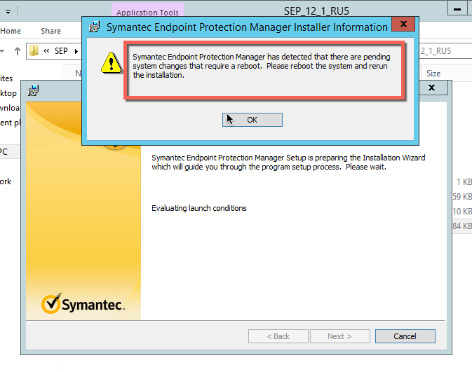 Symantec Endpoint Protection Client veya Manager kurulumu sırasında sunucuyu restart ettiğiniz halde “”Pending system changes that require a reboot have been detected” hatasının çözümü aşağıdaki gibidir.