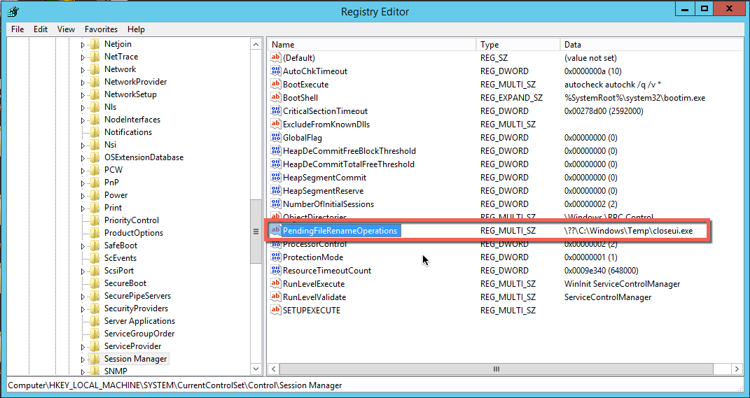 - Windows Registry’den Windows Registry’den HKEY_LOCAL_MACHINE\SYSTEM\CurrentControlSet\Control\SessionManager\ bölümünde PendingFileRenameOperations silmeniz yeterli olacaktır.
