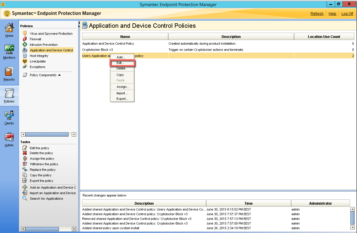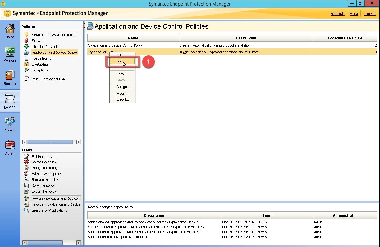 Son zamanlarda en ciddi güvenlik tehditlerinden biri olan Cryptolocker ile ilgili yeni Application Control Politikasını asagidaki link üzerinden indirip, uygularsanız Symantec Endpoint Protection tarafında ek koruma sağlayabilirsiniz. Politika uygulama adımları aşağıda anlatılmıştır. Politikayı ilk önce test grubunda uygulayip sonrasinda yaygılaştırınız.