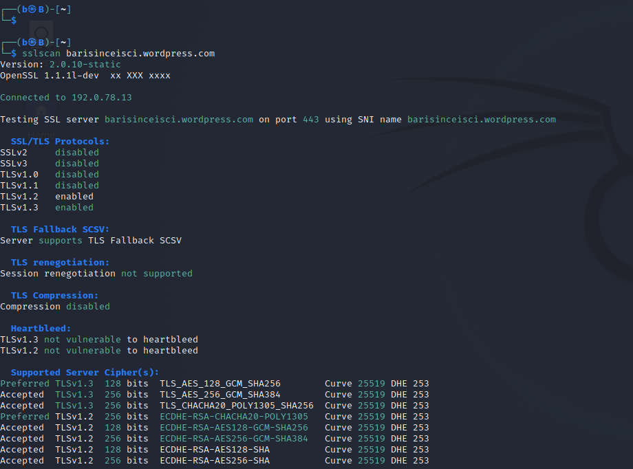 sslscan barisinceisci.wordpress.com 10443 (kullanılan servis farklı port kullanıyorsa