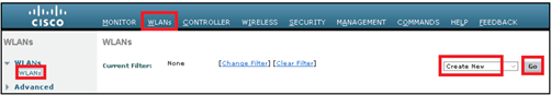 Radius Server yapılandırması tamalandıktan sonra yeni bir WLAN oluşturulur. WLANs sekmesine geçiş yapıldıktan sonra menülerde WLANs’a gidilir Create new denilerek yeni WLAN oluşturulur.