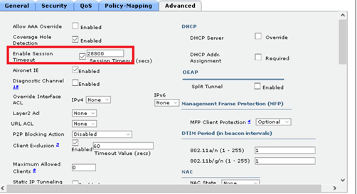 Advanced sekmesinden Enable session timeout 28800 yaparak Kullanıcı zaman aşım süresini Apply diyerek uygulanır.