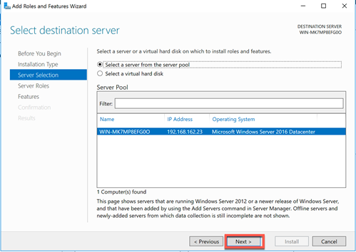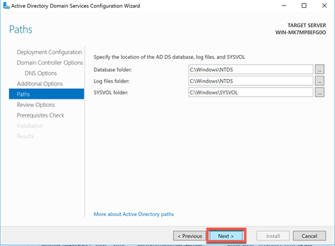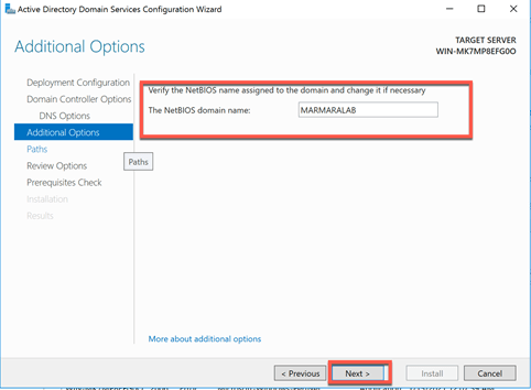 NetBIOS domain name otomatik olarak gelecektir. Next seçilerek yapılandırmaya devam edilir.