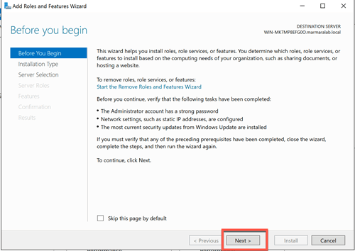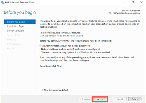 Ön koşullar kontrol edilir. Herhangi bir eksik yoksa Install diyerek kurulum tamamlanır.