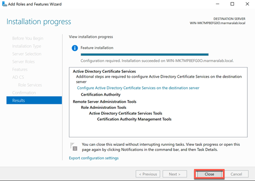 Feature Installation succeeded olursa olarak kurulum tamamlanmıştır.