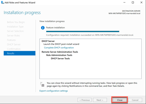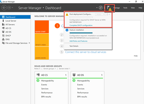 Server Manager bölümünden “Configure DHCP Server” seçilir.