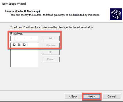 Router bölümünde Varsayılan ağ geçidi tanımlanır. Next seçilerek yapılandırmaya devam edilir.