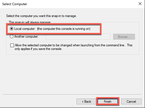 Select Computer ekranında Local Computer seçilir. Finish seçilerek seritika konsoluna giriş yapılır.