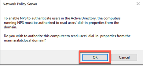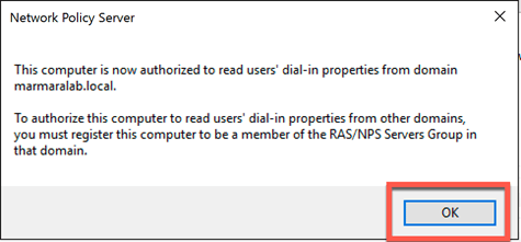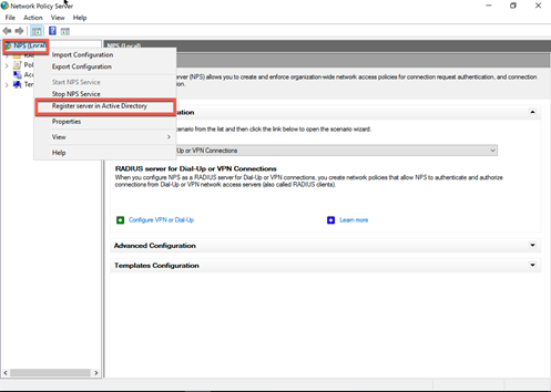 Network Policy Server ilk olarak Active Directory sunucusuna kayıt edilir.