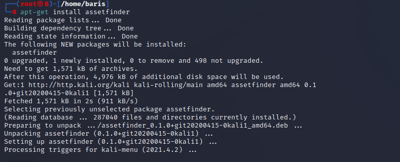 Assetfinder, crt.sh certspotter hackertarget threatcrowd wayback machine dns.bufferover.run facebook dahil olmak üzere çeşitli kaynaklardan belirli bir etki alanıyla ilişkili olan ilgili etki alanlarını ve alt etki alanlarını bulmak kullanılan için Go tabanlı bir araçtır.