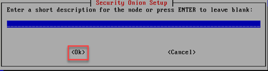 Security Onion kurulum ekranında gösterildiği gibi sunucu açıklaması yazılarak kuruluma devam edilir.