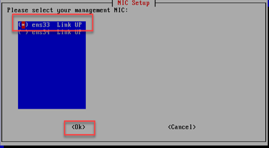 Ağ arayüzü kurulum ekranında Security Onion yönetim arayüzüne bağlanırken kullanacağı ağ arayüz kartını gösterildiği gibi arayüz seçilerek kuruluma devam edilir. Link’lerin up olması önemlidir.
