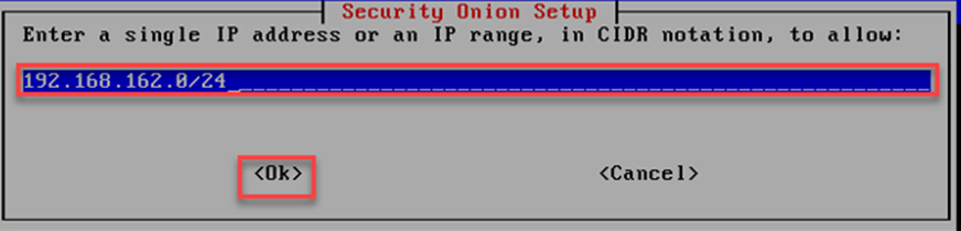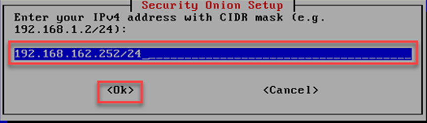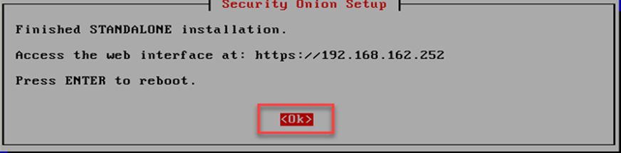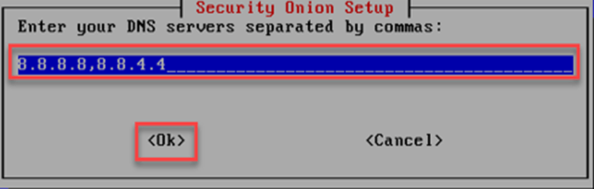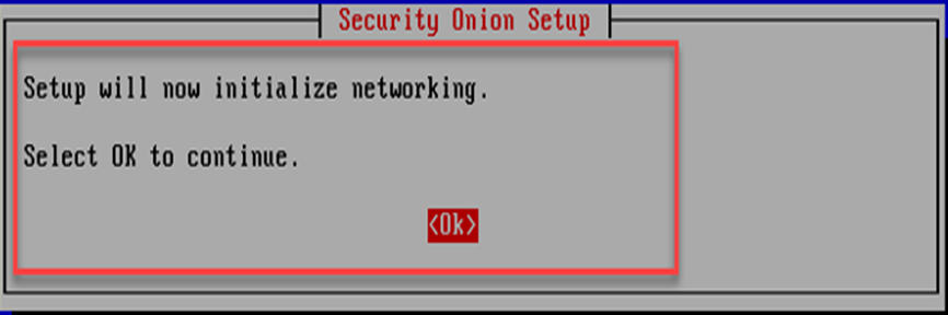Security Onion kurulum ekranında “OK” seçilerek ağ kurulumu tamamlanır.